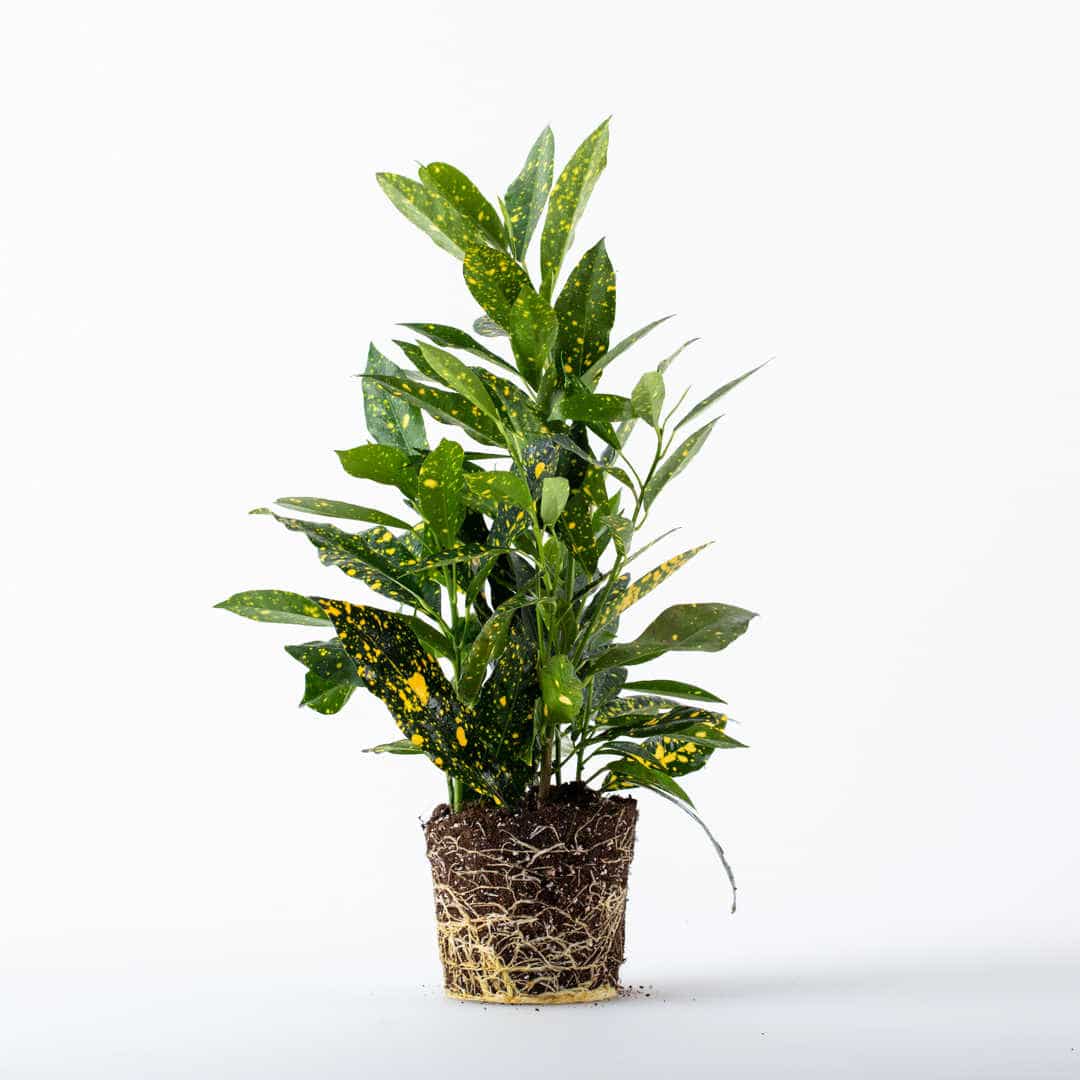 קרוטון מנוקד, צמח בעל מראה טרופי, עם עלים ססגוניים בצבע ירוק וכתמים צהובים. הקרוטון מתאים לשתילה בעציצים כצמח בית פטיו ומרפסת. מומלץ לשמור על אדמה